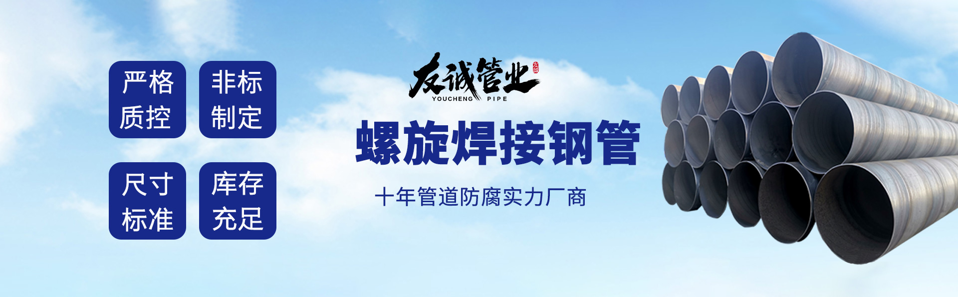 滄州友誠管業(yè)有限公司是一家專業(yè)從事生產(chǎn)防腐涂塑管道及管件于一體的大型企業(yè)。公司注冊資金8600萬元,位于中國管道生產(chǎn)基地—河北鹽山縣,近靠京滬高速、榮烏高速、黃石高速30公里,高鐵滄州西站40公里,天津國際機場、濟南遙墻機場150公里,為客戶來訪及業(yè)務(wù)發(fā)展提供了便利的交通條件。 鋼管系列:螺旋鋼管、無縫鋼管、ERW直縫焊管、JCOE埋弧焊直縫鋼管、熱鍍鋅鋼管。 涂塑系列:內(nèi)外涂塑鋼管、涂塑復合鋼…… 了解更多